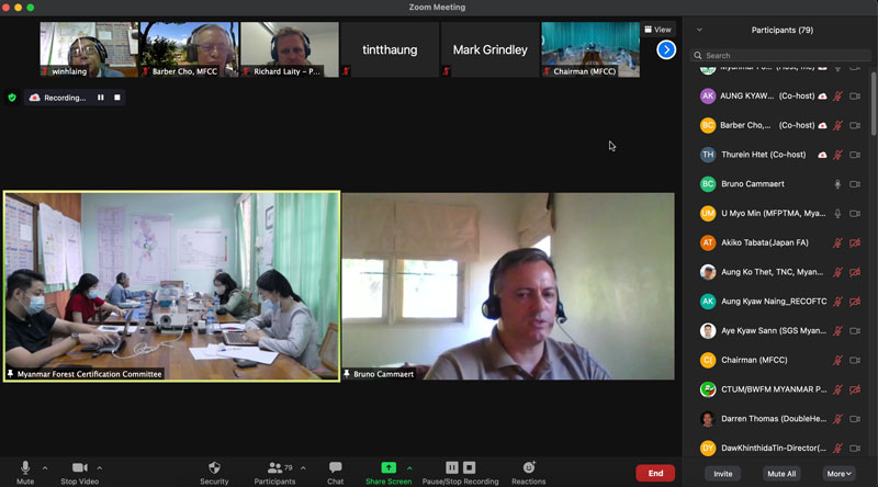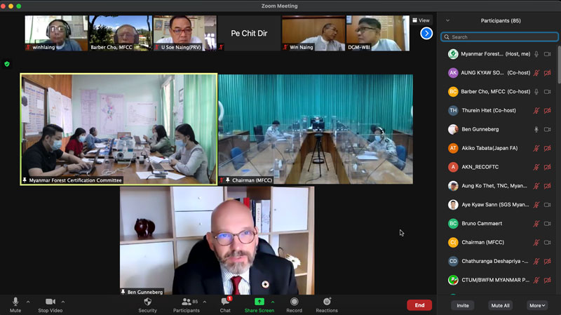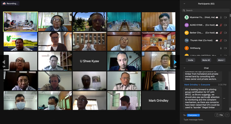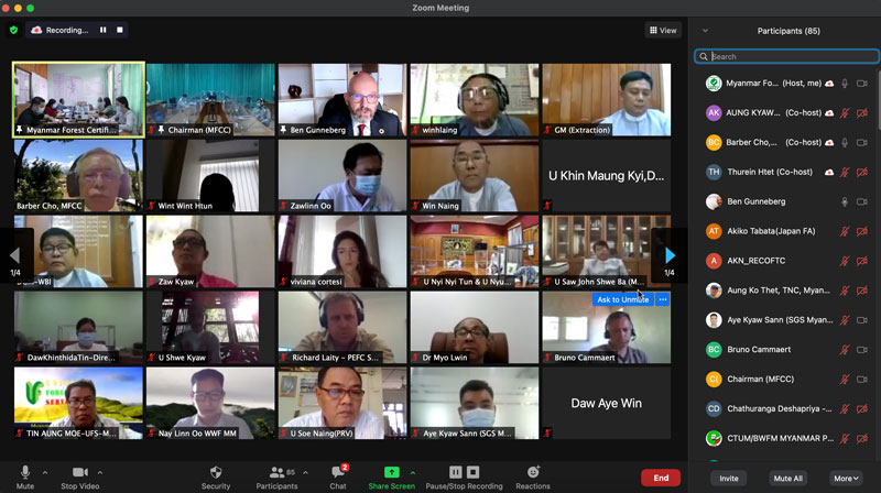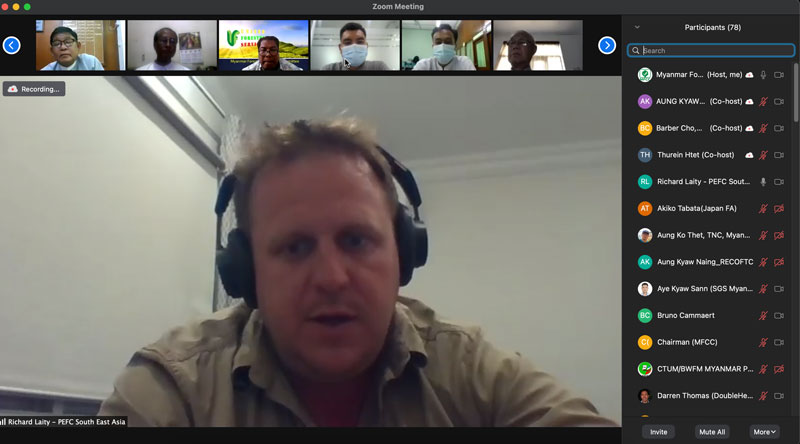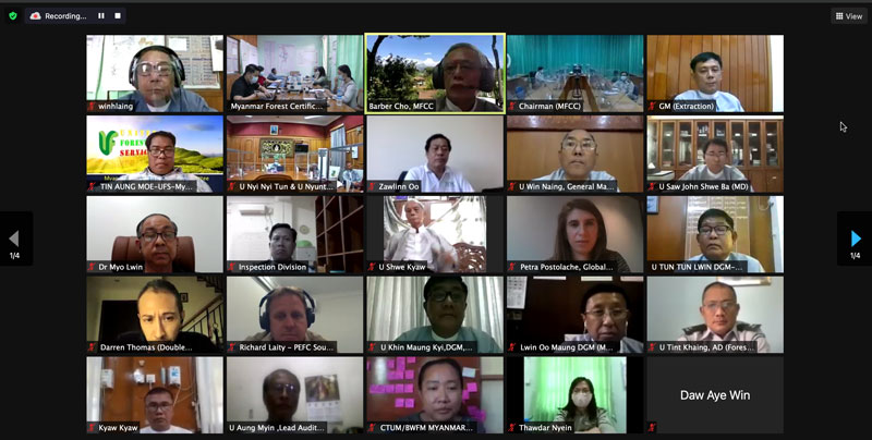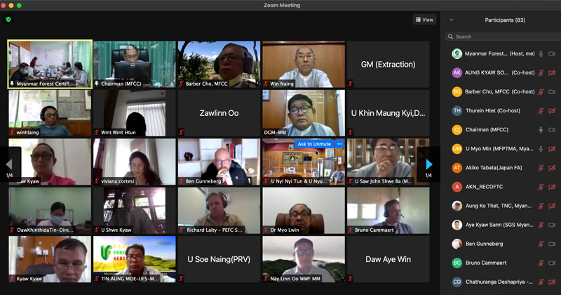 The webinar has been attended by the range of participants and representatives including Chairman of the MFCC (Permanent Secretary of the MONREC) , Director General and Senior Officers from Myanmar Forest Department, Managing Director and Senior Officers from Myanmar Timber Enterprise, Representatives from Environmental Conservation Department and Dry Zone Department , Secretary General/CEO of PEFC and its members, CSO, Certification Bodies, MSG members as well as international stakeholders, INGOs, NGOs and private sectors.